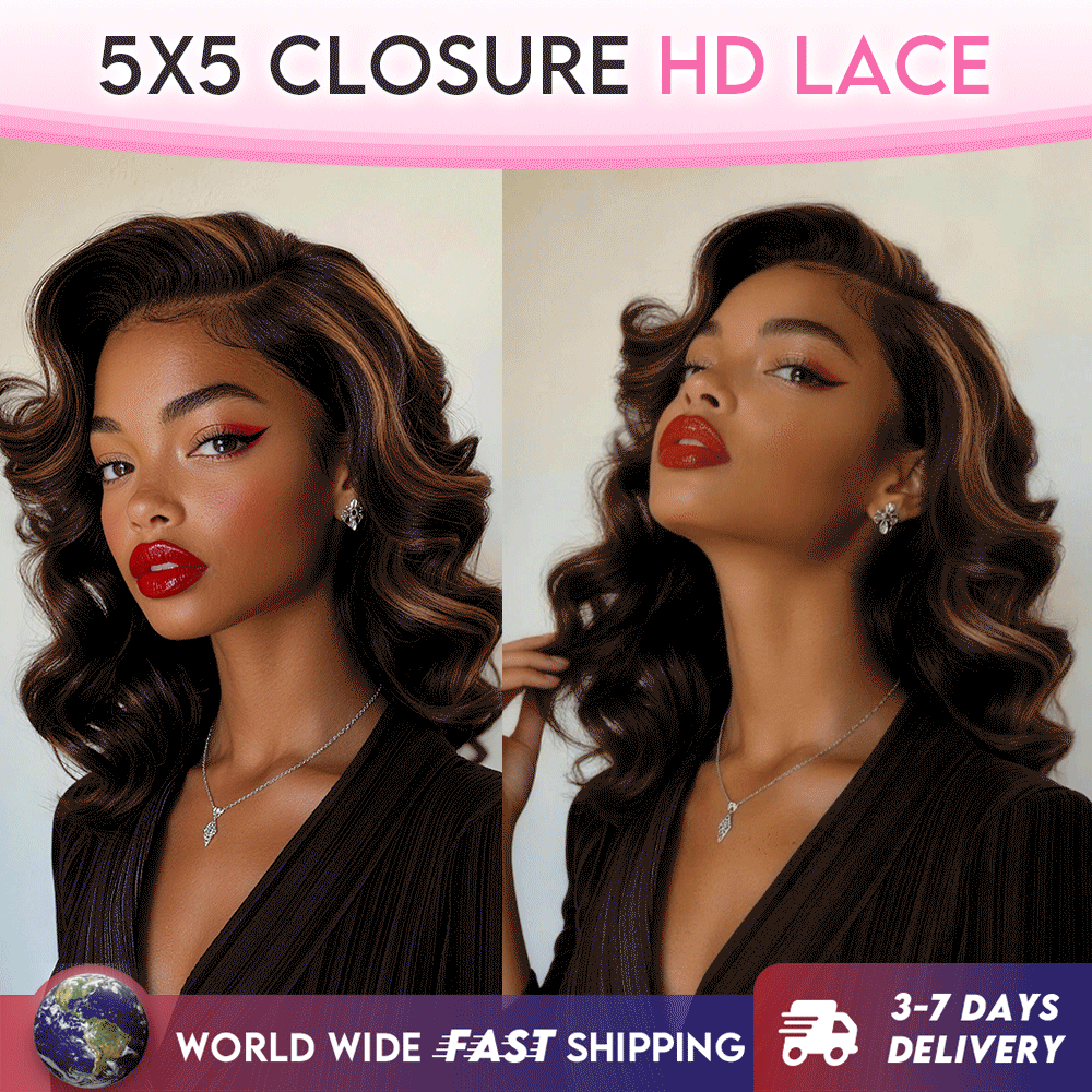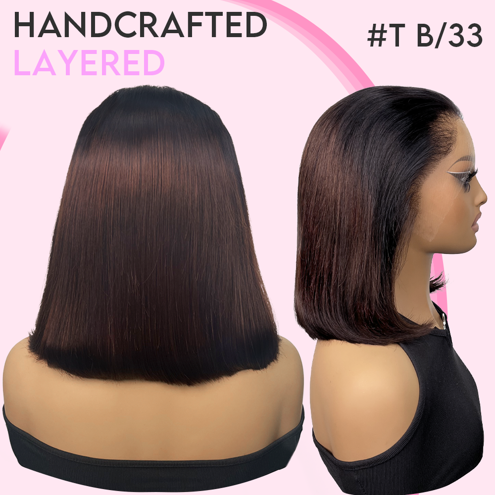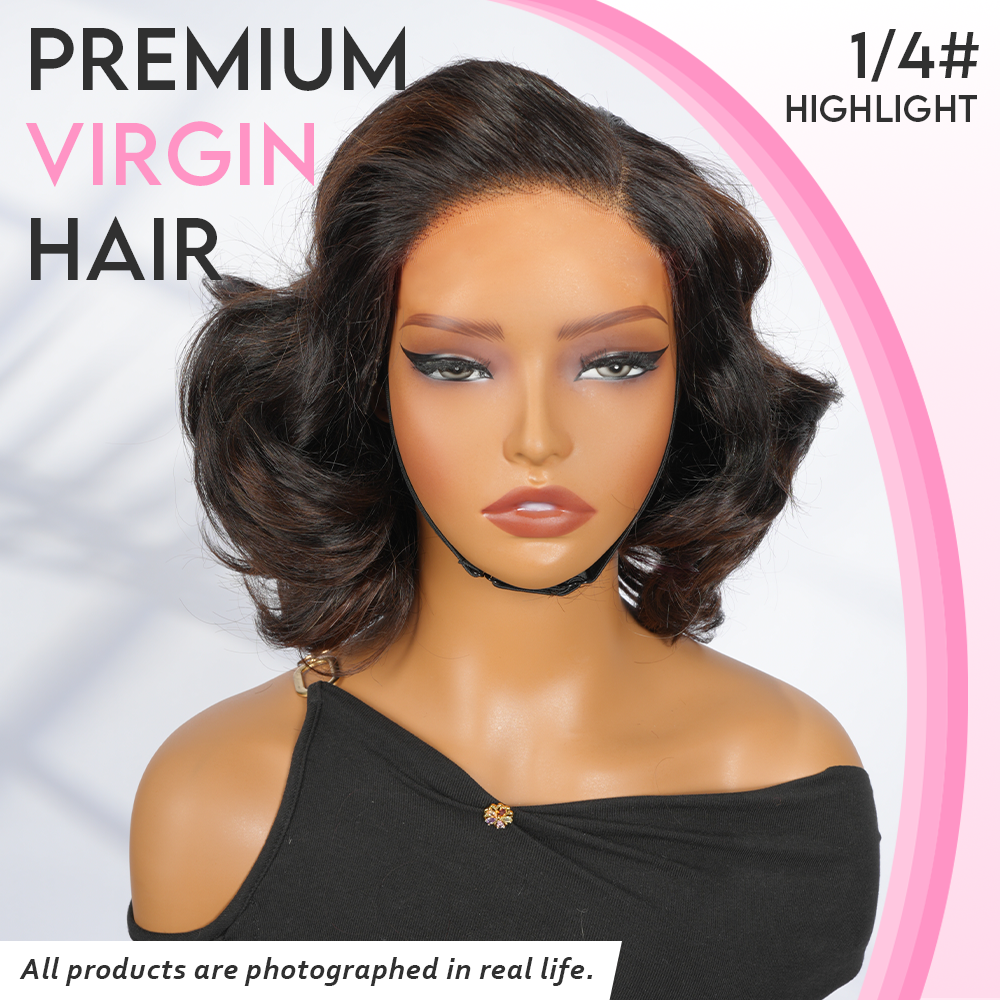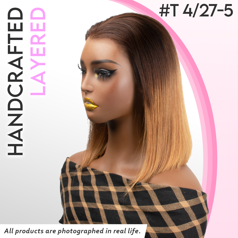 Black/Blonde Highlight Short Layered Bob Wig Glueless 5x5 Closure Pre-Cut Lace Wig