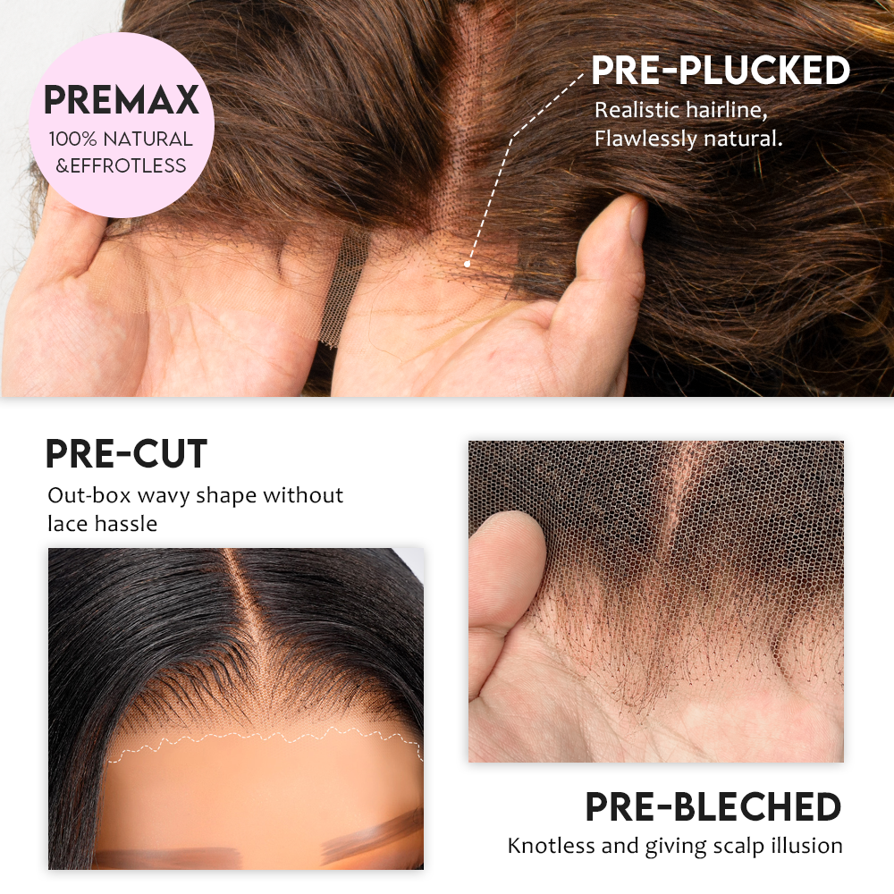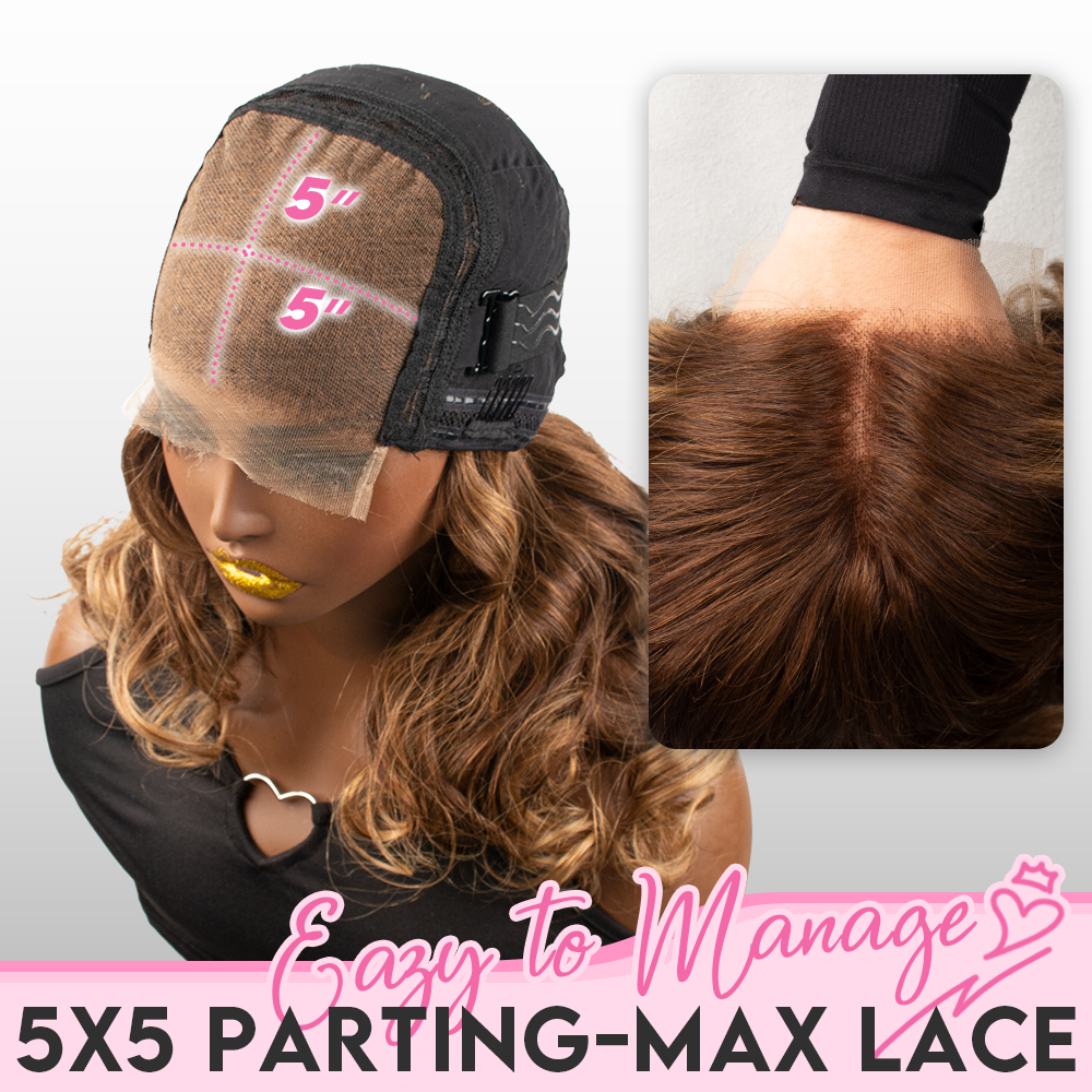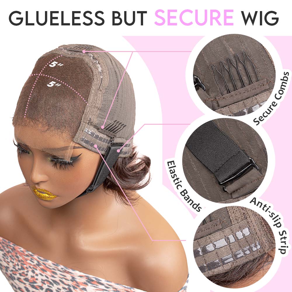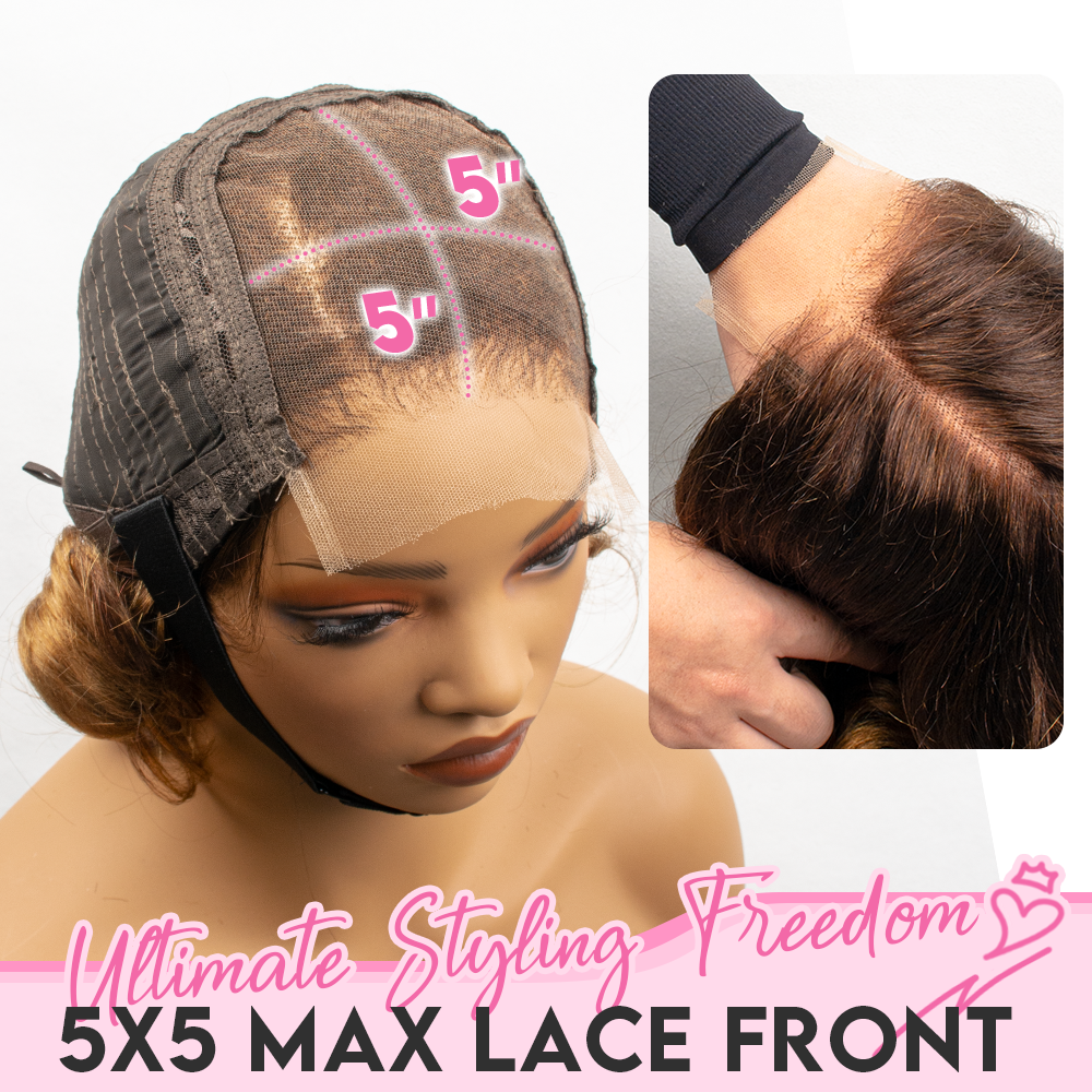 Black/Blonde Highlight Short Layered Bob Wig Glueless 5x5 Closure Pre-Cut Lace Wig