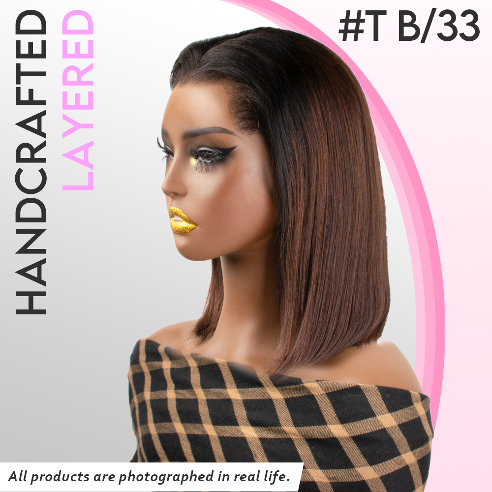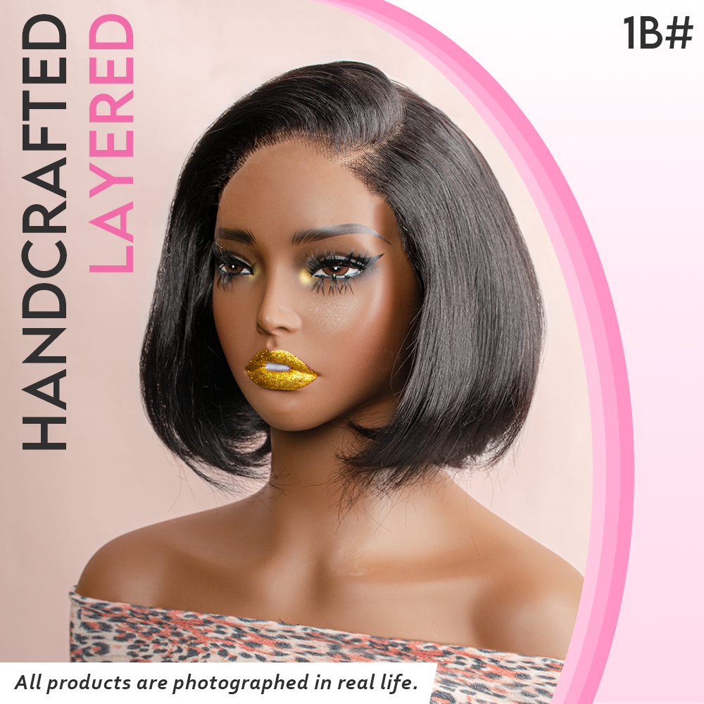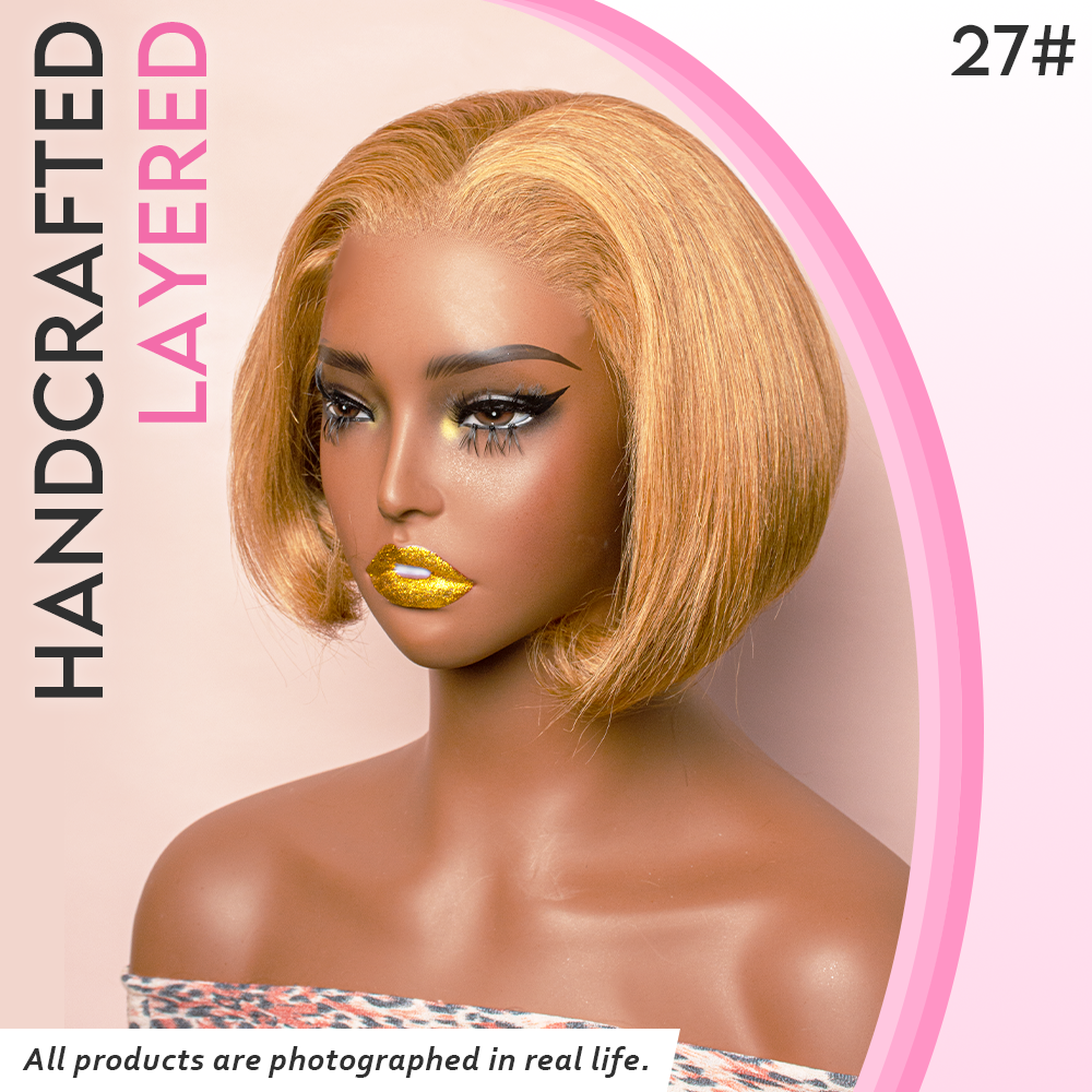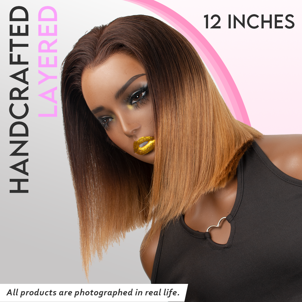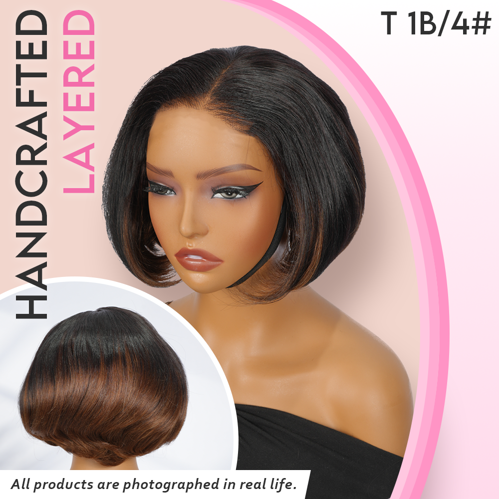 Black/Blonde Highlight Short Layered Bob Wig Glueless 5x5 Closure Pre-Cut Lace Wig