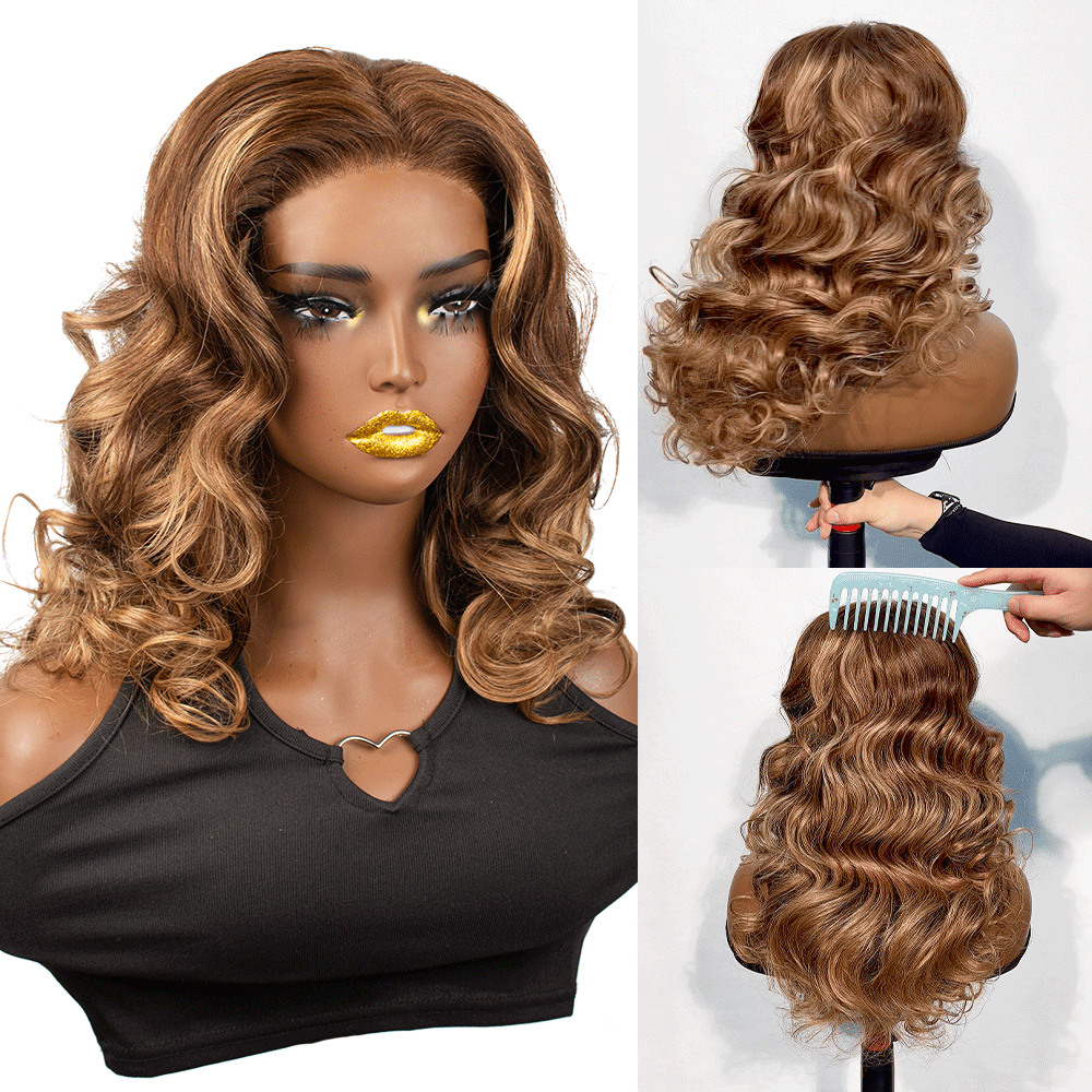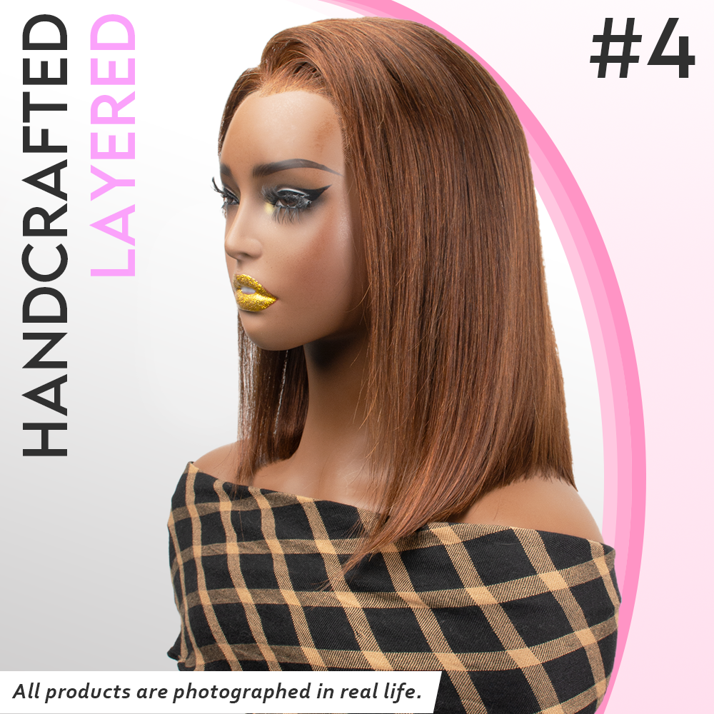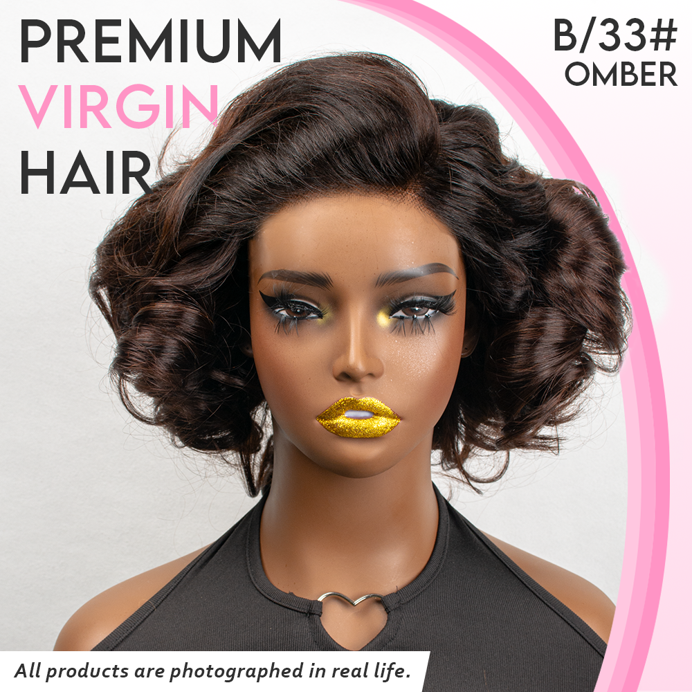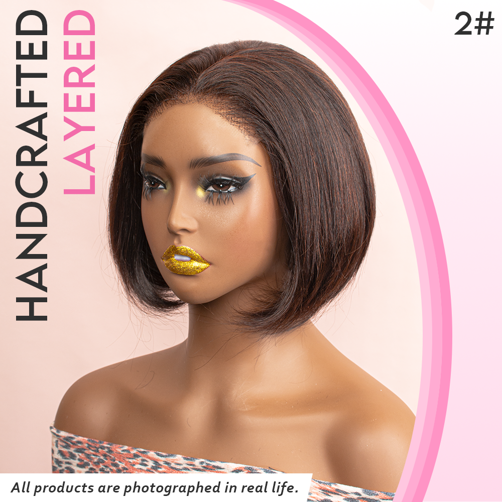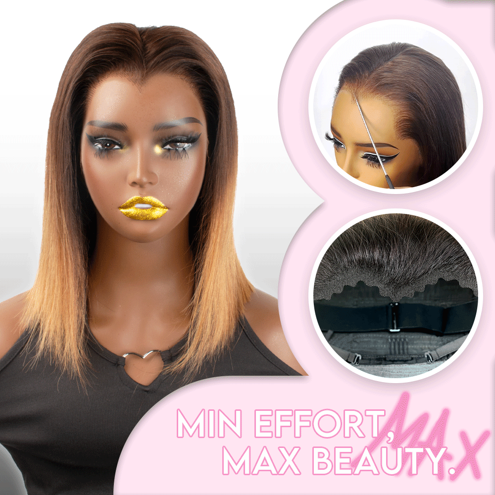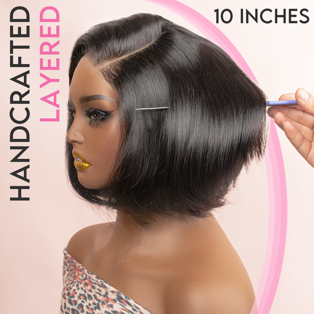 Black/Blonde Highlight Short Layered Bob Wig Glueless 5x5 Closure Pre-Cut Lace Wig
