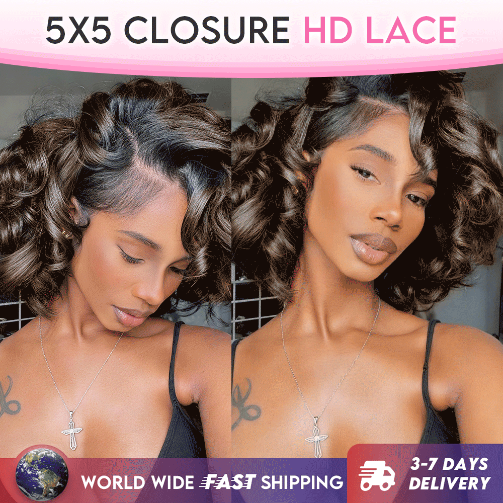 200% Density Long-Lasting Loose Curl Bob Glueless 5×5 HD Lace Closure Wig – Pre-Cut Lace, Multiple Colors Available