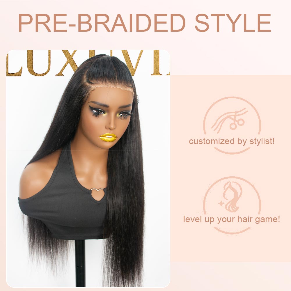 LUXUVIP Upgrade 13x4 Pre-Everything Wig: Pre-Cut HD Lace, Pre-Plucked Hairline, Pre-Bleached Knots, Pre-Braided! Real Ear To Ear Lace Size, No Effort To Cut The Lace, Knotless Finish For An Ultra-Natural Look.